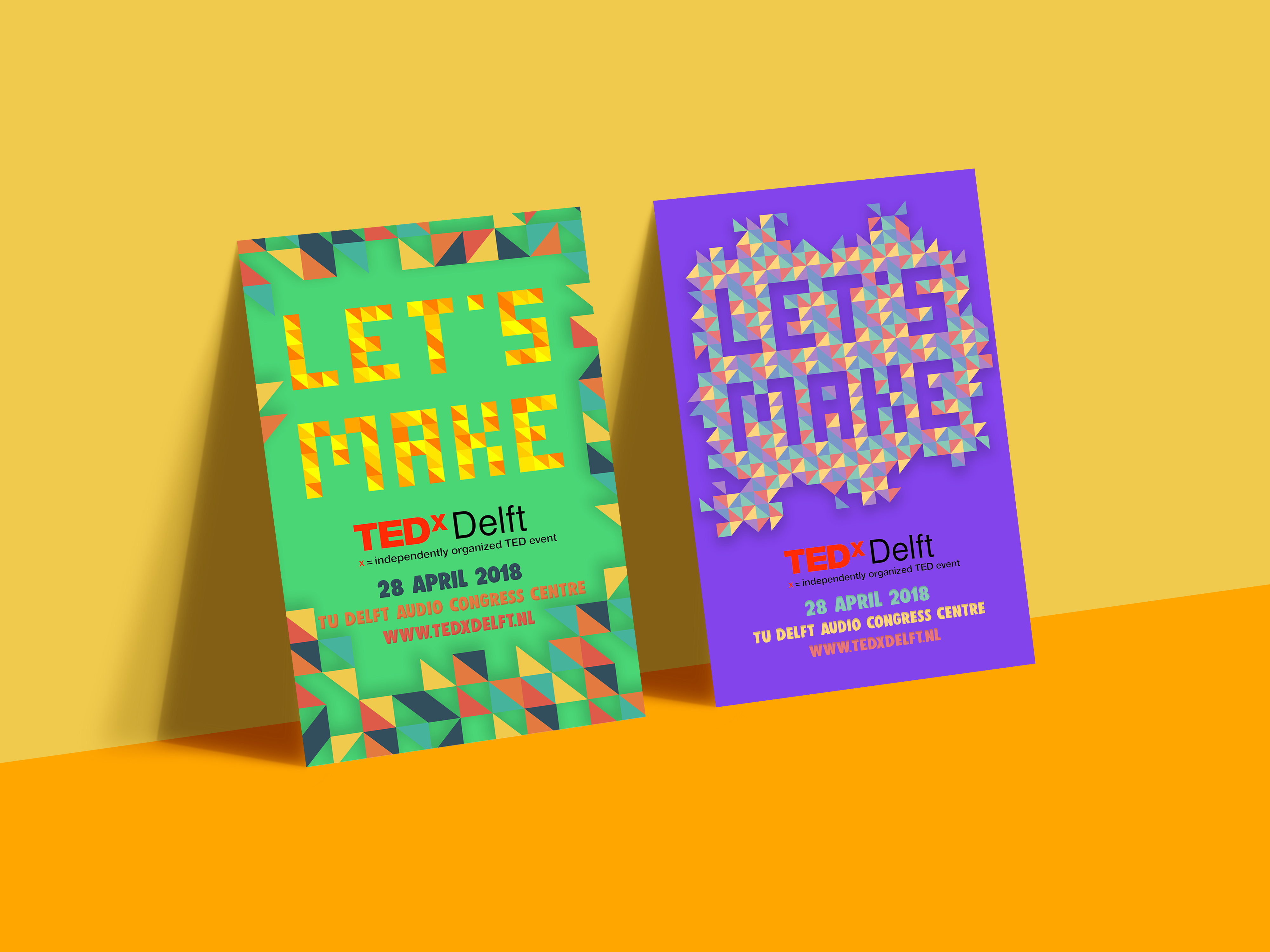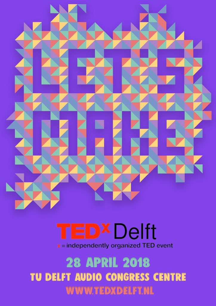 Dit zijn twee affiches voor een evenement van TEDx Delft. De opdracht was om een visuele identiteit te ontwikkelen door het ontwerpen van een beeldtaal voor TEDx Delft met als thema ”Let’s Make”.